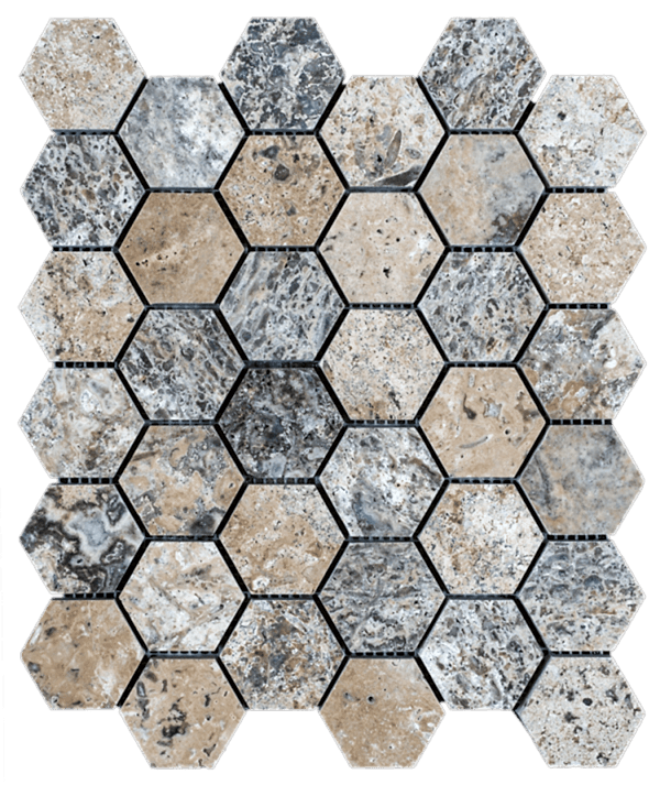 Silver Hexagon Mozaik Doğal Taş Kaplama