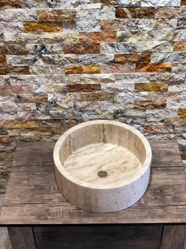 LV – 001 Traverten Doğal Patlatma Taş Lavabo / Evye