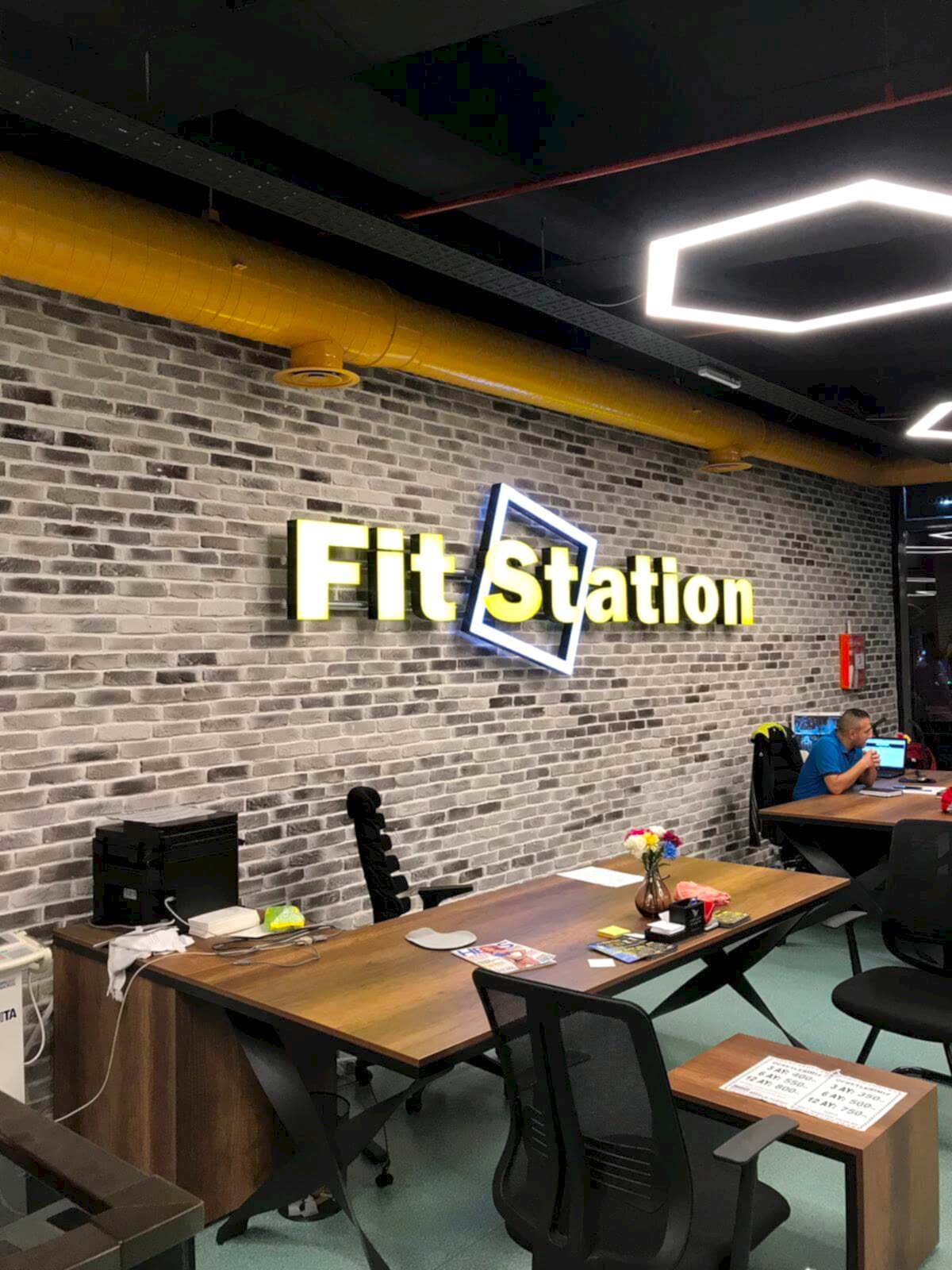 - İş yeri tabela arkası duvarları dekoratifl tuğla kaplama,