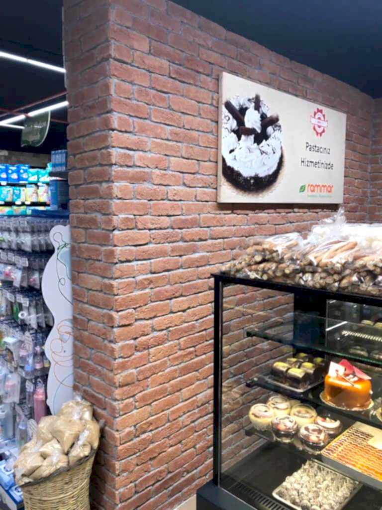 • İş yeri tabela arkası duvarları dekoratifl tuğla kaplama,